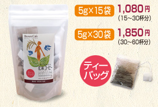 玄米を8時間じっくり焙煎した、煮出し用・便利なティーバッグタイプの「黒焼き玄米茶」です。