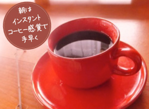 「ぶらうんかふぇ」顆粒タイプ小さじ1杯とインスタントコーヒーをお好みの量(小さじ1/2~)をカップに入れて熱湯を注ぎます。