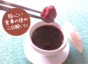 「ぶらうんかふぇ」顆粒タイプ小さじ1杯(2g)をカップに入れお湯を約150cc注ぎ混ぜます。梅干し1個を入れて、つぶしながらいただきます。