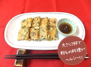(生地)ジャガイモ大1個、ネギ5束、ニンジン3㎝、かつおぶし1p、A(「お気軽玄まい」大さじ1、薄力粉大さじ3)、卵1個(たれ)酢大さじ1/2~1、しょうゆ大さじ2~3、三温糖大さじ2/3、ごま油少々