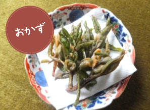 「天ぷらの衣」をつけて、油で揚げます。