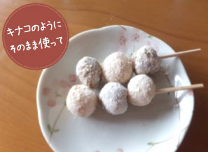 (3)お団子を、Cを混ぜたものにまぶします。